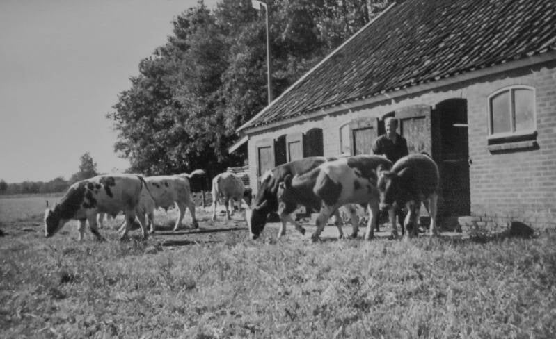 Harry Braakhuis bij de stal, later omgebouwd tot het huidige sanitairgebouw.
